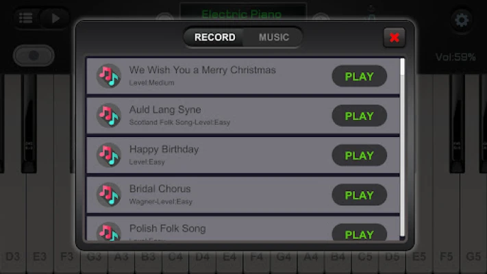 ★ Connect your own digital piano and play along.