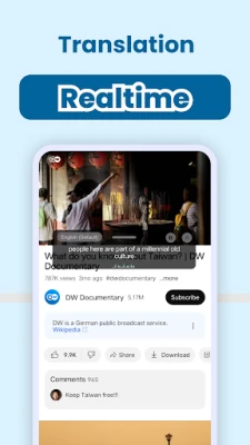 Real-Time Translation: While watching any video or listening to audio, Real-Time Video Translator generates and translates subtitles in real time, so you can understand the language you want with almost no waiting.