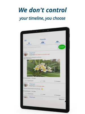 At realfriends, there’s no spying, no following, and no adds. We don’t control your feeds page, your feeds are exclusively your friend’s posts and no posts from unknown strangers.
