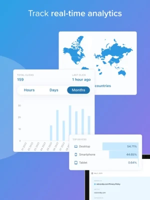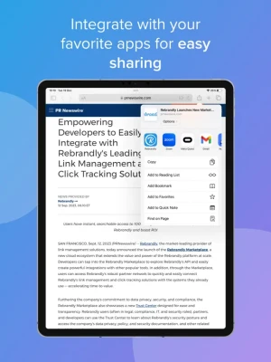 Creating and sharing links with the Rebrandly mobile app is the same as creating and sharing with the Rebrandly website. This app does not collect any additional browsing activity or history data. Rebrandly is fully compliant with GDPR.