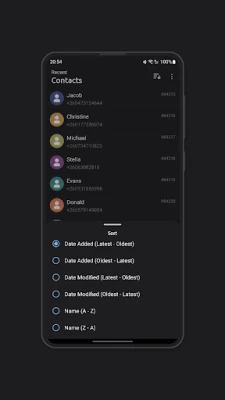 Quickly find and manage your most recent contacts! The automatically sorted contact list shows your newly saved contacts first enabling you to find important numbers you recently saved without the hassle of searching through your entire contact list.
