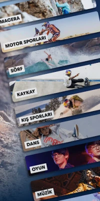 ● Motosiklet, dağ bisikleti, sörf, kaykay, motor sporları, uçurum dalışı, dans, uçurtma sörfü, kayak, snowboard, koşu ve MC kapışmalarını içeren canlı spor etkinliklerine ve yarışlara erişim sağla.