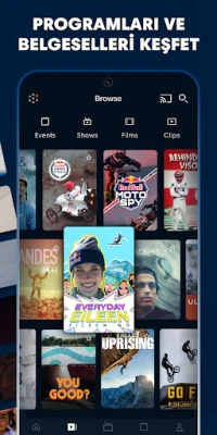 İçerikler; motosiklet, tırmanış, sörf, kaykay, motor sporları ve dağ bisikleti ve pek çok farklı branştan yeni filmler, videolar, canlı yayınlar ve yarışlarla sürekli güncellenir. Reklam YOK, uygulama içi satın alma YOK ve sürpriz ödeme duvarları YOK! Tüm mobil cihazlarda kullanılabilir.