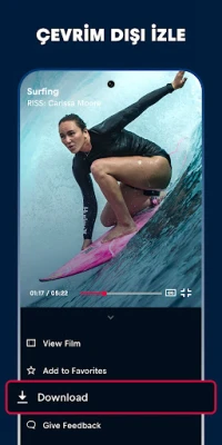 İstediğin zaman izlemek için videoları ve filmleri indirip çevrimdışı görüntüleyebilirsin.