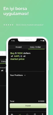 Uygulama ile önce sanal olarak borsada alım satım işlemi yapmayı öğrenecek ve yeterince deneyim kazandıktan sonra isteyenler gerçek paraya geçebilecektir. Hepsi bir arada!