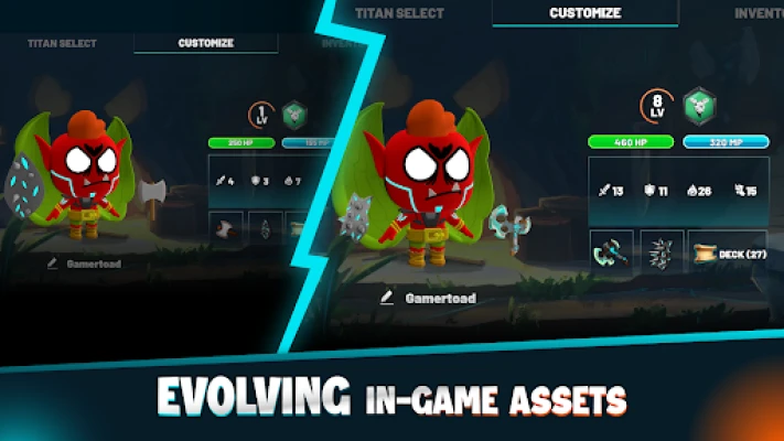 Once you choose the Element and name your Titan, you'll build your battle strategy by selecting scrolls for their deck and strengthening their attributes. You can even visit the marketplace to discover weapons to equip to make your Titan even more ferocious in the Arena!