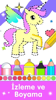 Bu uygulama, genç çocuklar için ideal bir seçenek olacak şekilde tasarlanmıştır. Çocuklar için etkileşimli çizim oyunları aracılığıyla hem eğlenceli hem de eğitici deneyimler sunar. Çocuklar için eğlenceli boyama oyunları ve kolay takip edilebilen çizim dersleri ile çocuğunuz, yaraticiliğini ve öğrenme hızını kendi temposunda geliştirecektir. Miniklerin güvenli ve dostane bir ortamda boyama yapmalarına yardımcı olan boyama aktiviteleri, çocuklar için eğitim oyunları ve minikler için öğrenme oyunları ise büyüleyici bir gelişim sağlar.