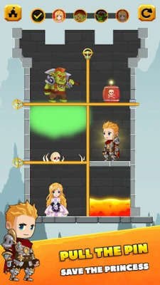 Solve puzzles and take the treasures by removing the pin in the right way. Rescue the princess and escape from monsters.🔥 Help the hero find the treasure and save the princess now!