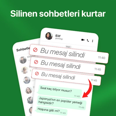 • Silinen mesajları geri yüklemek, kişi silme sırasında sohbeti görüntülüyorsa mümkün değildir