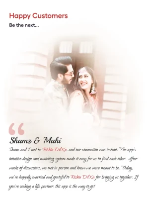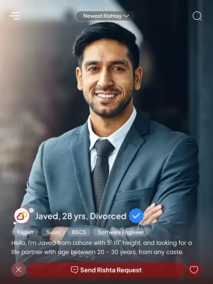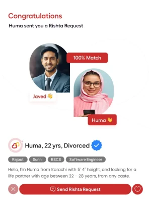 Create a detailed profile to showcase who you are, and utilize our smart search to find compatible matches based on your preferences. Rishta Dil Ka offers advanced features like personalized matchmaking, verified profiles, and a secure system to search for genuine marriage proposals and rishtay for yourself, your children, siblings, friends, and relatives.