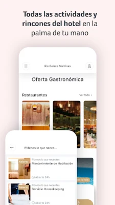 Con la app de RIU Hotels & Resorts, planificar y disfrutar de tus vacaciones nunca ha sido tan sencillo. Accede a una amplia gama de servicios diseñados para ofrecerte una estancia inolvidable, todo desde la comodidad de tu dispositivo móvil.