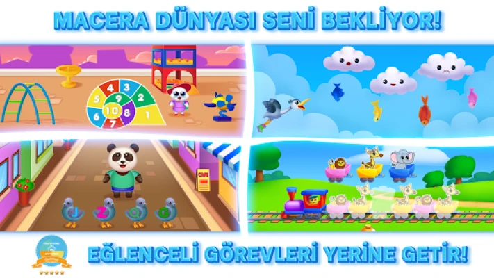 Komik karakterler çocuğunuzu farklı ses efektleri, komik animasyonlar ile eğlendirecek ve oyunda kolayca gezinmenize yardımcı olacaktır.