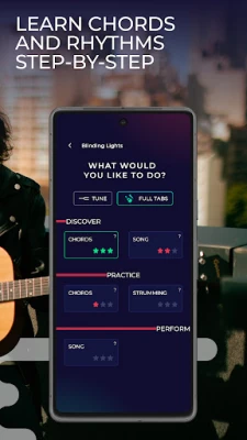 Roadie Coach’s simple interface makes it fun to learn guitar and ukulele songs quickly and helps you progress one level at a time. Move through each of the stages of learning a song by perfecting your technique and crushing that song score.