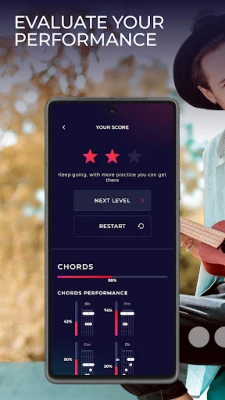 • Get instant feedback with your overall score, rhythm score, and chords score to know what you need to continue practicing