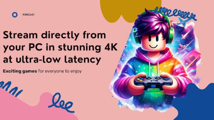 Robcast lets you stream your Roblox games from your PC directly to your Smart TV. It captures your PC's gameplay, streams it with ultra-low latency (≈35ms) and up to 4K 60fps quality.