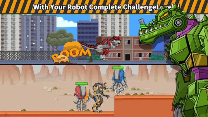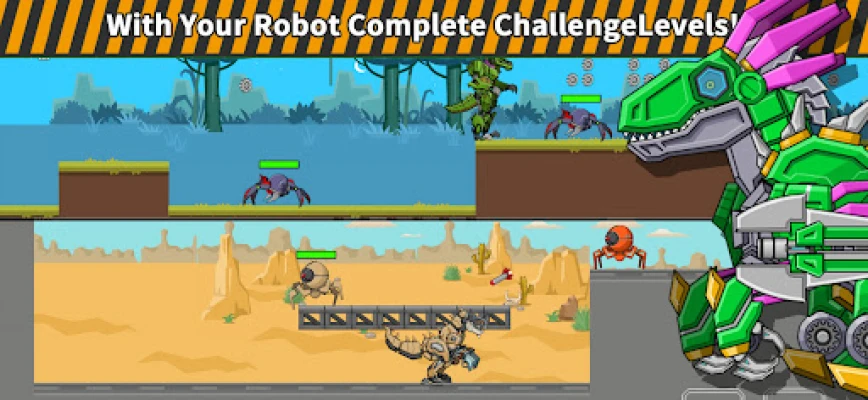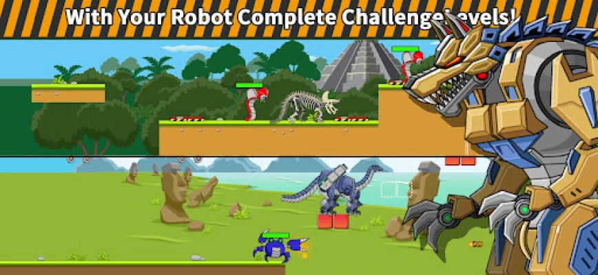 You can assemble 16 robots in the game, they are Robot Red TRex, Crocodile, Brontosaurus, Robot Werewolf, Skeleton TRex, Triceratops, Pterosaur, Desert TRex, And VelociraptorRex. Drive your robot dino, explore the world, defeat all alien robots, many challenge levels waiting for you!