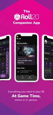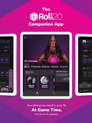 The Roll20 Companion App is everything a player needs at game time! Keep your characters at your fingertips at home, the game store, or wherever your adventures take you. Access your 5E character sheet from your mobile device and get your character’s info at-a-glance including your armor class, feats, and inventory.