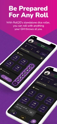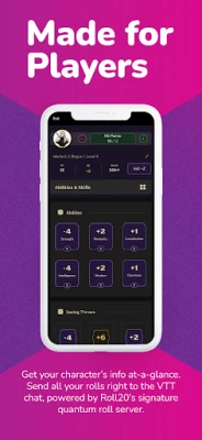 View your character’s stats and skills during your game session, including your spell DC and proficiencies. Track inspiration, spell slots, hit points, ki points, and sorcery points. Ready to roll for initiative or make an ability check? Let us do the math for you. Dice rolls made in the app are also sent to the Roll20 VTT chat, powered by our signature quantum roll server.