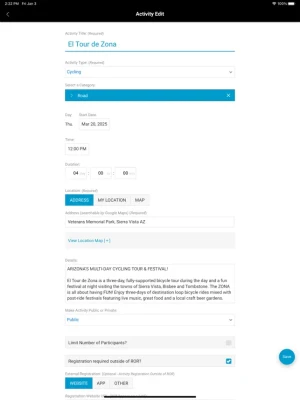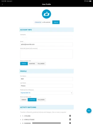 Create/Update an Activity. Select an Activity (as listed/updated in your Profile) and include: