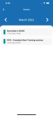 The application also offers members the event list in a calendar that shows events from the club, the club's district and also from the Rotary Norway.