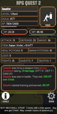 RPG QUEST 2 is amazing! This release contains over 147 modifications from the original release. Got an idea? Drop us a line! Love a feature? Drop it in the reviews. No notifications. No in-app. One very tiny optional banner ad you can turn on and off.
