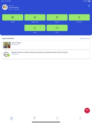 Aplikasi ini mencakup 1. LAYANAN MANDIRI warga dalam hal: a. Pembayaran Tagihan rutin dan non rutin b. Tombol Panik dan Lapor c. Berbagi Informasi d. Surat menyurat (Khusus untuk RT - Rukun Tetangga) e. Pooling f. Kas / Pembukuan