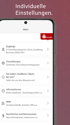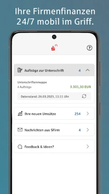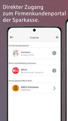 • Ihren Zugang zum Firmenkundenportal Ihrer Sparkasse können Sie direkt in die App einbinden
