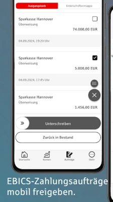 Daneben lässt das S-Finanzcockpit Sie mobil Zahlungen freigeben oder ablehnen und hält Sie über ausstehende Zahlungsaufträge auf dem Laufenden.