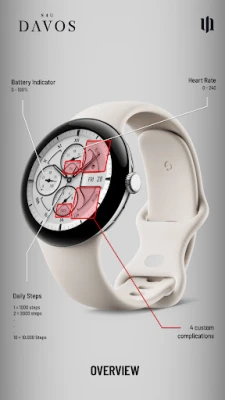 The S4U Davos watch face includes an Always-On Display feature for continuous timekeeping. The AOD colors automatically adapt to the design of your standard watch face with a pure black background.