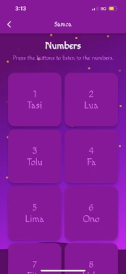 - Samoan numbers (with audio) - Samoan colors (with audio) - Samoan days (with audio) - Samoan foods (with animations) - Samoan family (with audio and animations) - 100% offline.