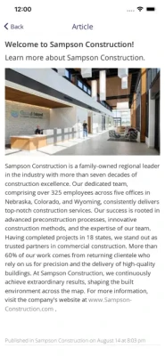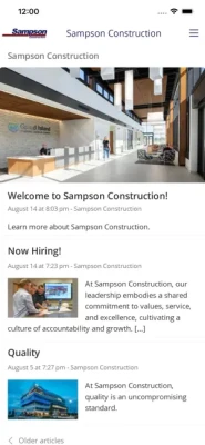 This app keeps you up to date regarding information and news about Sampson Construction. With push notifications, you know what is going on - always and everywhere. On top of that, the app offers the following features: employee directory, private and group messaging, forms, and much more.