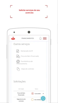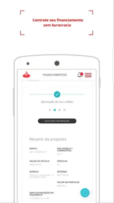 O aplicativo Santander Financiamentos é o seu canal de atendimento digital na palma da mão, onde e quando quiser. Ainda não é nosso cliente? Escolha “Quero um Financiamento”, faça a simulação, envie uma proposta e acompanhe todas as etapas online.
