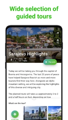 SmartGuide won’t let you get lost and you won't miss any must-see sights. SmartGuide uses GPS navigation to guide you around Sarajevo at your convenience at your own pace. Sightseeing for the modern traveler.