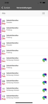 Ein Chat, aufgeteilt in die wichtigsten Bereiche, rundet diese App ab und ermöglicht den datenschutzkonformen Austausch unter Betroffenen.