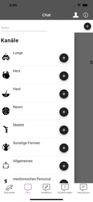 Ein speziell für medizinisches Personal vorgesehener Chatbereich gibt diesem die Möglichkeit zu einem gesondert geschützten Austausch.