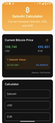 - **Instant Conversion** - Convert between Satoshi, USD, and EUR seamlessly