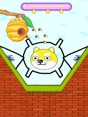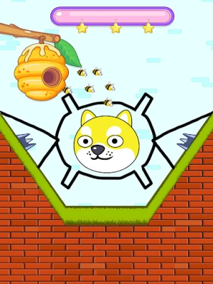 Players must strategize and draw the protective walls carefully to ensure the dog isn't harmed by the bees. The game also introduces additional challenges, such as avoiding lava, water, spikes, and bombs, which the dog must overcome to reach safety. Each level allows for multiple solutions, encouraging players to think creatively and test their problem-solving abilities.