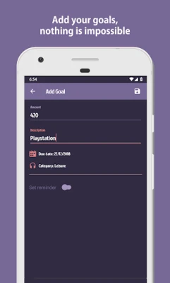 ✔ Add your goals, set the amount, category and deadline.