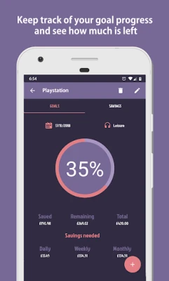 ✔ See the daily/weekly/monthly savings needed to reach your goal ✔ Track your savings and goal by categories.