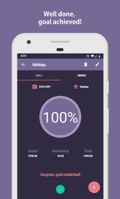 ✔ Start adding savings to each goal. You can also withdraw money from it.