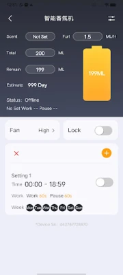With the safe and professional intelligent fragrance management application, you can not only monitor and control the equipment in real time, but also set different scene modes, which can be opened at a fixed time and with one click, so as to create a full intelligent fragrance manager for you!