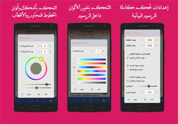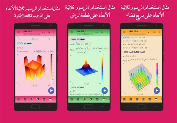 Graphs and three-dimensional: There are types of graph and not one type such as surface graphs or axes and 3D graphs, and you can add them directly from the buttons below the screen and put variables and mathematical equations on them easily.