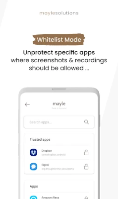 Go to Trusted Apps → Tap the three dots (top right) → Set Trusted Apps Mode to Blacklist. In this mode, screenshots and recordings are allowed for all apps except those on the blacklist, which remain hacker protected.