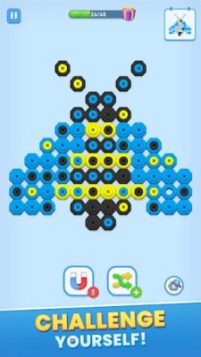 Bu, vidalarla yapılan bir sayılarla boyama aktivitesi gibidir! Bu casual pixel renk sıralama oyununda sadece alın ve eşleştirin. Tamamlanan başyapıtlar, yaratıcı başarılarınızın her zaman korunmasını sağlayarak kişisel galerinizde kalıcı olarak saklanır.