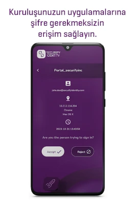 Kurumsal açıdan değerlendirildiğinde ise SecurifyID, kurumlara tüm kullanıcı kimliklerini merkezi olarak yönetmelerine olanak sağlayan, kullanıcıların davranışsal ve bağlamsal özelliklerini yapay zekâ ve davranışsal biyometri gibi tekniklerden yararlanarak analiz edebilen ve bu sayede risk tabanlı, adaptif ve çok faktörlü kimlik doğrulama sağlayabilen ve kullanıcılara uzaktan statik ve dinamik kurallar uygulayabilen bir kimlik ve erişim yönetim sistemidir.