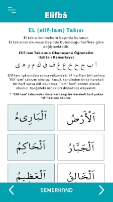 Temel harflerden başlayarak, adım adım Kur'an okuma becerilerinizi geliştireceğiniz bu ücretsiz uygulama ile kısa sürede mukaddes kitabımız Kur’an-ı Kerîm’i okumaya başlıyoruz.