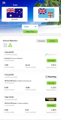 SendMoneyPacific is not a money transfer service. It is a app that allows you to compare the costs for free.