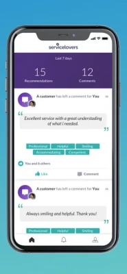 Service employees receive recognition in the form of recommendations on their Servicelover's profile. This recognition can then be used to illustrate one's value as an employee.