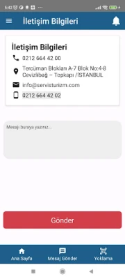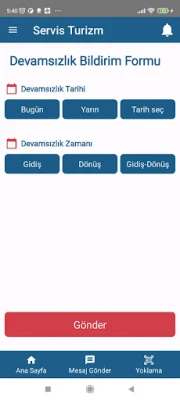 Uygulama, Servis Turizm tarafından yolcu taşımacılığına özel olup, yolcu, sürücü ve tedarikçi girişleri bölümlerinden oluşmaktadır.