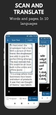 • Camera capture for words, paragraphs and save the words in lists, or translate them